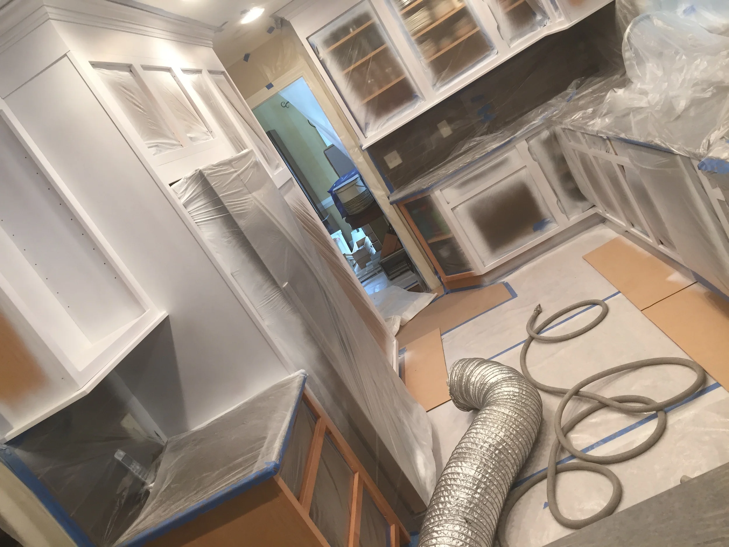 Although some painters offer cabinet painting, kitchen refinishing is very different from simply painting your cabinets. The best way to understand the difference between cabinet refinishing and cabinet painting is to ask yourself this question: Would you paint your car using the same methods/materials you paint your walls with? The simple truth is that your cabinets are more like furniture than your doors and crown molding. Therefore, kitchen cabinets require special preparations, materials and techniques, not found at your local big-box store. Cabinet refinishing requires processes more similar to automotive finishing. Spray equipment and professional grade lacquers afford the smoothest, most durable, long lasting finish available. Essentially, your cabinets will look brand new again, if done properly. Perhaps the best part about refinishing is that, although you're getting what looks like brand new kitchen cabinets, your cost is roughly one-fifth the cost to replace your kitchen cabinets.